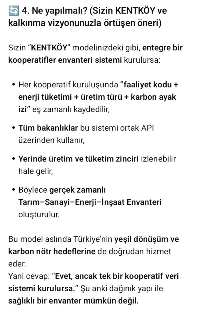 Mevcut kooperatif sistemindeki dağınıklığa örnekler vererek bu sorun çözülemediği takdirde ülkede sağlıklı Tarım ve Sanayi envanterine ulaşmanın mümkün olamayacağını yazdım. Çok uzatmayacağım. CHATGPT ile konuyu tartıştık. Bana hak verdi. Aşağıdaki satırlarda durum tespiti ve çözümleri paylaşıyorum. Taşınır ve Taşınmazlar envanteri ile birlikte bugün yazdığım ikinci envanter yazısı. Fena taktım bu envanter meselesine..!